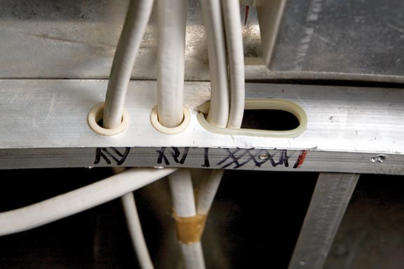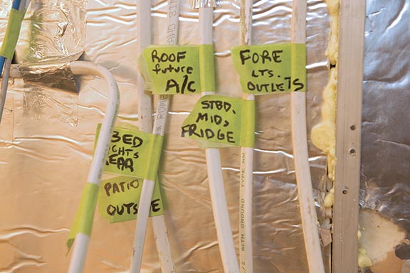 Make sure that when your wiring is going through the “studs” or frame of your trailer, they route through plastic ports. It’s absolutely necessary to keep all electrical chases through metal protected from chafe, strain, and abrasion. There’s a whole lotta chafing goin’ on when you’re out there on the road.