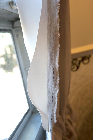 I lined my linen curtains with Drapery Budget Blackout, not only for sun protection, but extra privacy.